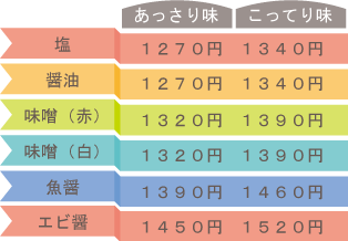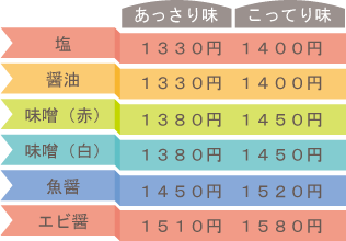 ※ラーメンには種類、大小に関係なく全て漬物が付いています。